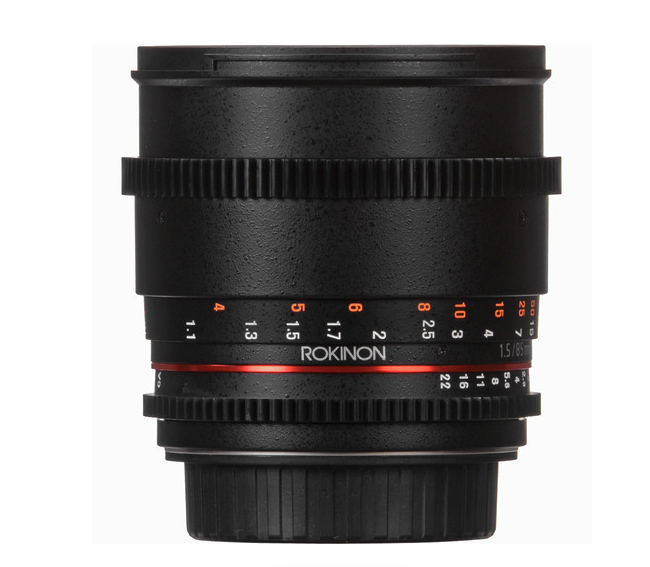 Utilizando um processo de revestimento multicamadas para uma reprodução de cores consistente de lente para lente, a lente Rokinon 85mm T1.5 Cine DS responde ao desafio de montar um conjunto de lentes ao longo do tempo. A lente vem com montagem Canon EF e possui foco com engrenagem padrão da indústria e anéis de íris que compartilham posição comum com outras lentes Rokinon Cine DS. Para ajudar os extratores de foco que precisam trabalhar em ambos os lados da lente, as escalas de abertura e foco são marcadas em ambos os lados da lente.
